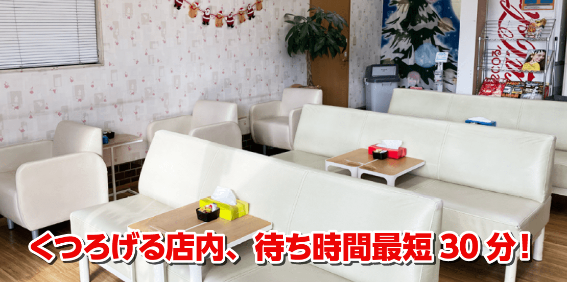 ご予約いただければあまりお待たせせずに作業にとりかかりますので、およそ30分程の待ち時間となります。お客様の混雑状況によっては多少前後することがございます。